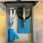 علاوة على ذلك، هناك مجفف الشعر وملاءات الحمام والمناشف أيضًا.